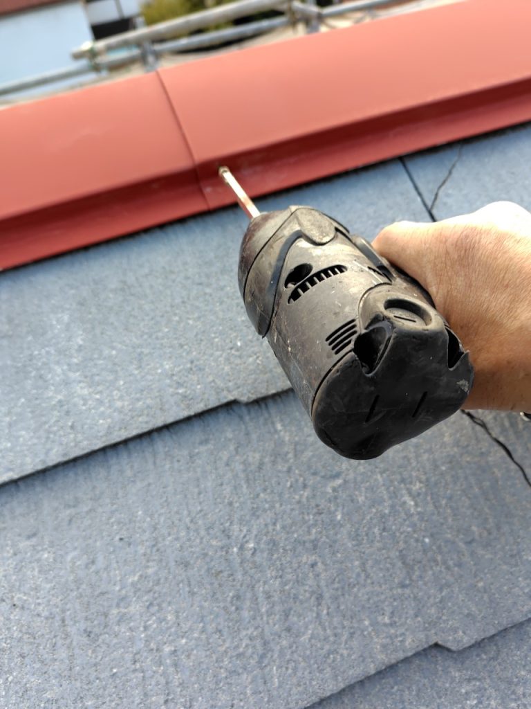 施工中、あきる野市、2件現場A、ビス締め[あきる野市、足場、外壁塗装、屋根塗装]