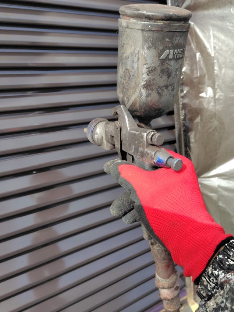 施工中、あきる野市、戸袋、上吹き、シリコンルーフSI仕上げ[あきる野市、足場、外壁、屋根、塗装]